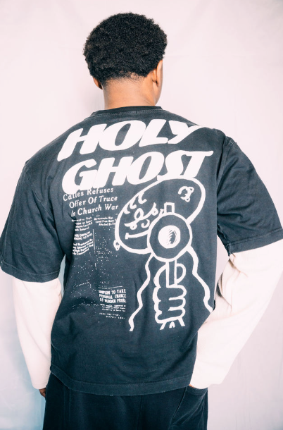 Finished with a screen-printed HolyGhost graphic on the back and a woven label detail for a clean, intentional finish.